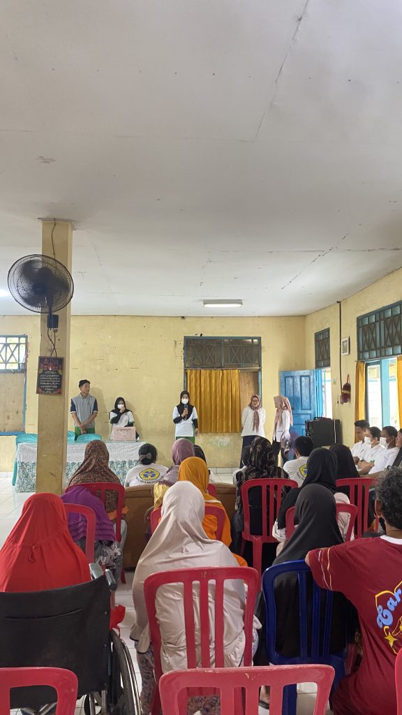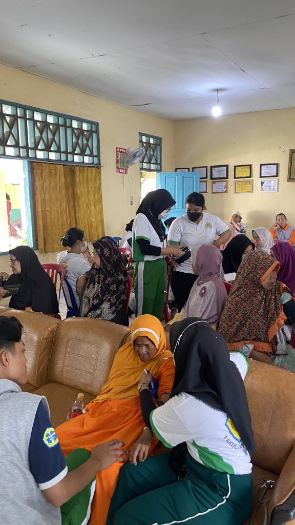Selain pendampingan aktivitas harian, mahasiswa melaksanakan pemeriksaan kesehatan melalui pengukuran tekanan darah untuk memantau kondisi lansia. Kegiatan ini didampingi oleh Ns. Lilik Pranata, M.Kes., Ns. Aprida Manurung, M.Kep., dan MK Fitriani Fruitasari, M.Kep.