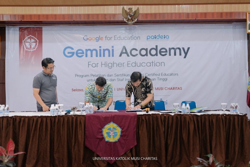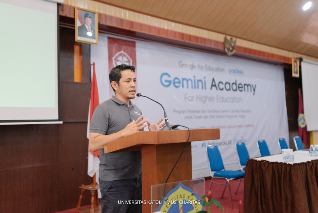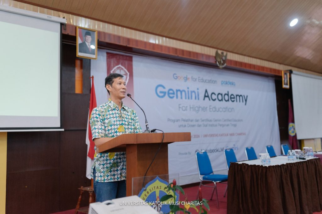 PALEMBANG – Universitas Katolik Musi Charitas (UKMC) kembali menunjukkan langkah progresif dalam mengadopsi teknologi mutakhir di dunia pendidikan. Bertempat di Gedung Yoseph Lantai 3, Kampus Bangau, UKMC sukses menyelenggarakan program “Gemini Academy: Pelatihan dan Sertifikasi Gemini for Educators”, pada Selasa 27 Januari 2026 . Kegiatan ini merupakan hasil kolaborasi strategis antara UKMC, Google Indonesia, dan Paideia. Melalui program Gemini Academy, UKMC berkomitmen untuk membekali tenaga pendidik dengan keterampilan Kecerdasan Buatan (AI) dalam karya pelayanan pendidikan.