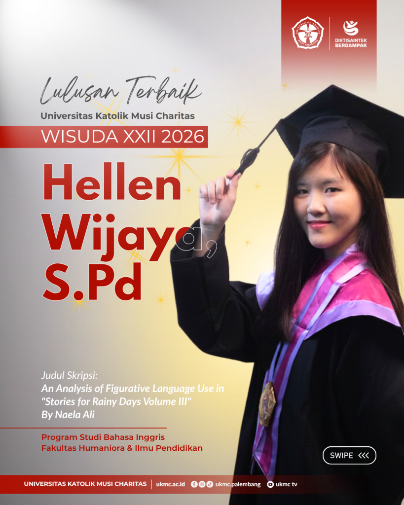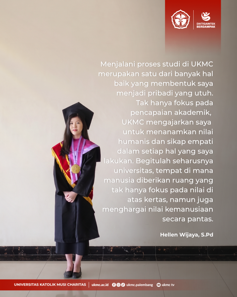 PALEMBANG – Universitas Katolik Musi Charitas (UKMC) dengan bangga kembali merayakan momen pencapaian mahasiswanya pada acara Wisuda ke-XXII. Pada kesempatan yang berbahagia ini, Hellen Wijaya, S.Pd., menyampaikan pidato yang sangat menginspirasi sebagai perwakilan lulusan terbaik.